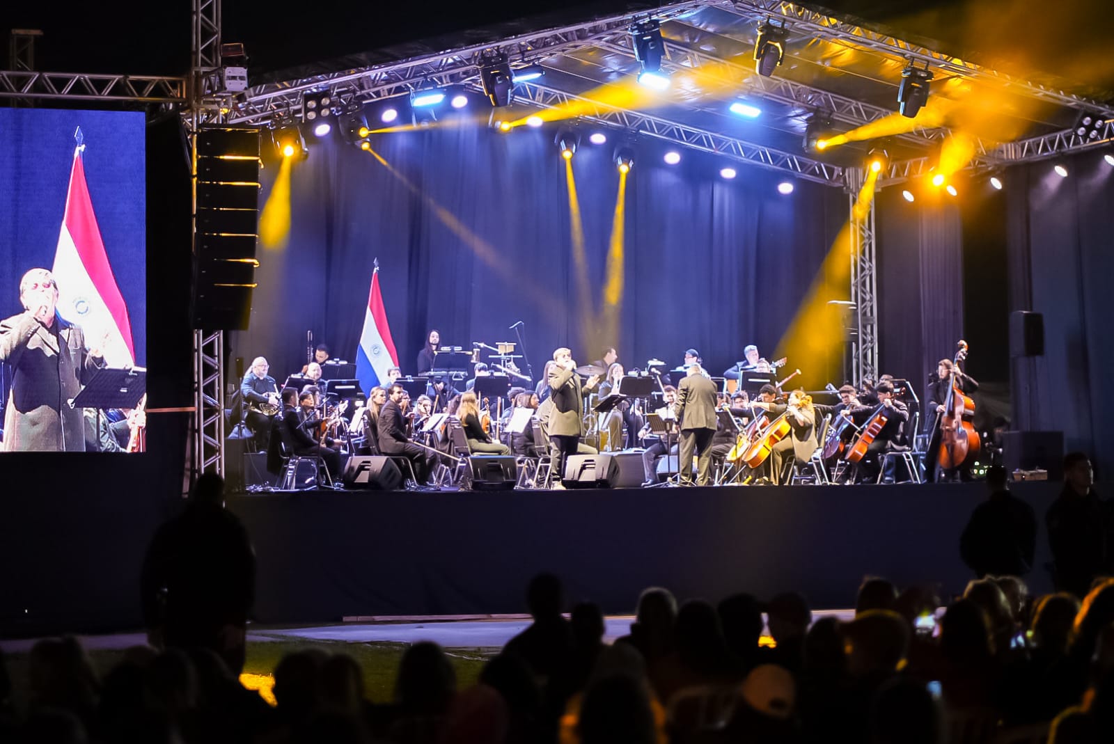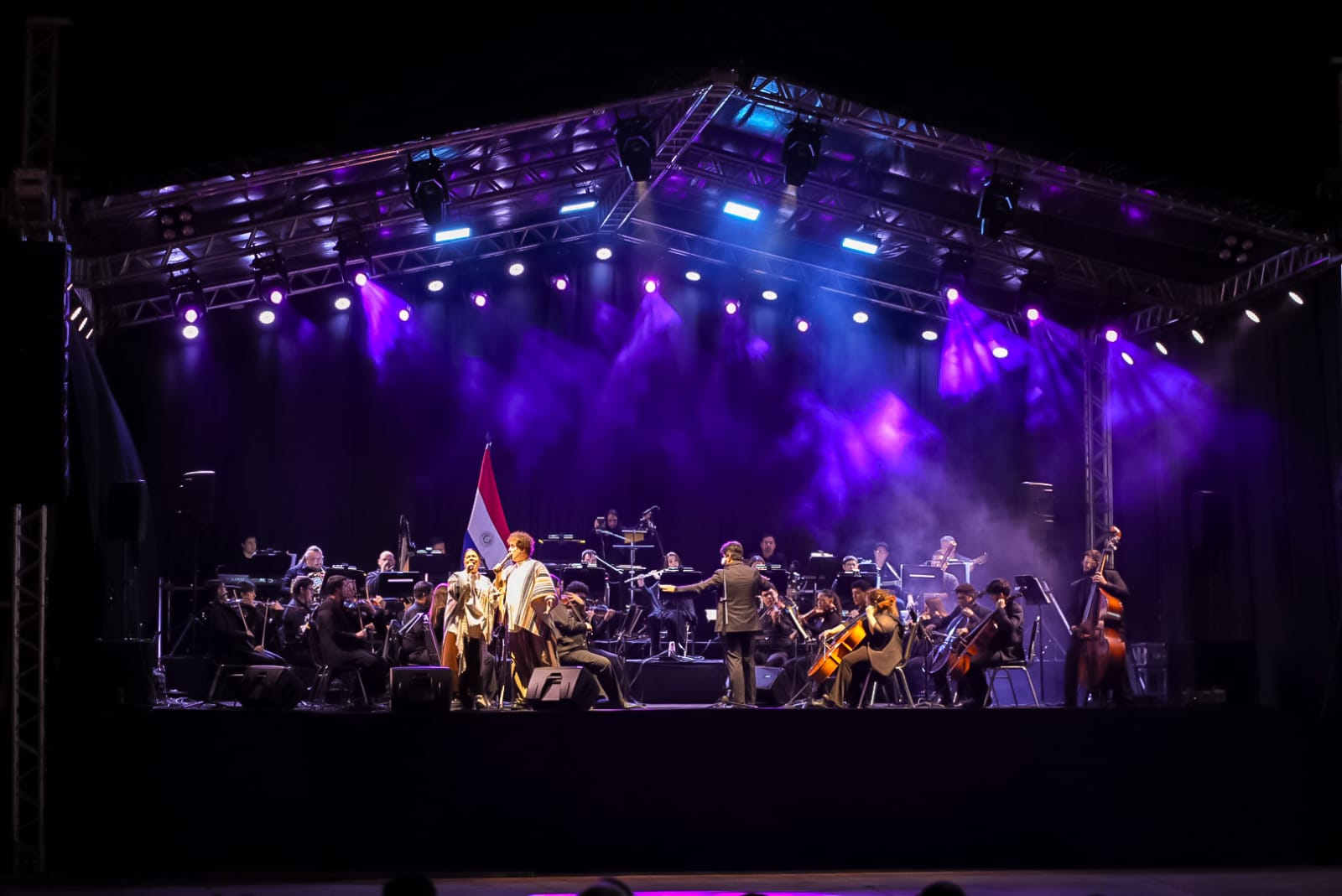 El espectáculo reunió a más de 50 músicos de la Orquesta Nacional de Música Popular, dirigidos por los maestros Luis Álvarez y Óscar Fadlala, junto a reconocidos intérpretes nacionales como Ricardo Flecha, Andrea Valobra, Purahéi Soul, Juan Toli Nuñez, Vicky Díaz y Orlando Caballero. También se sumaron artistas locales de Itapúa: Rebeca Arramendi, Ymaguaréicha, Walter Cataldo, Vito Kruger y Salvador García .