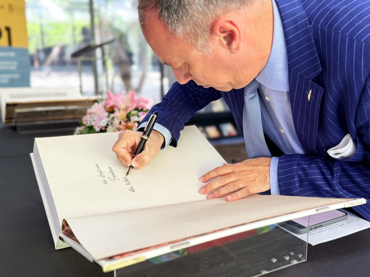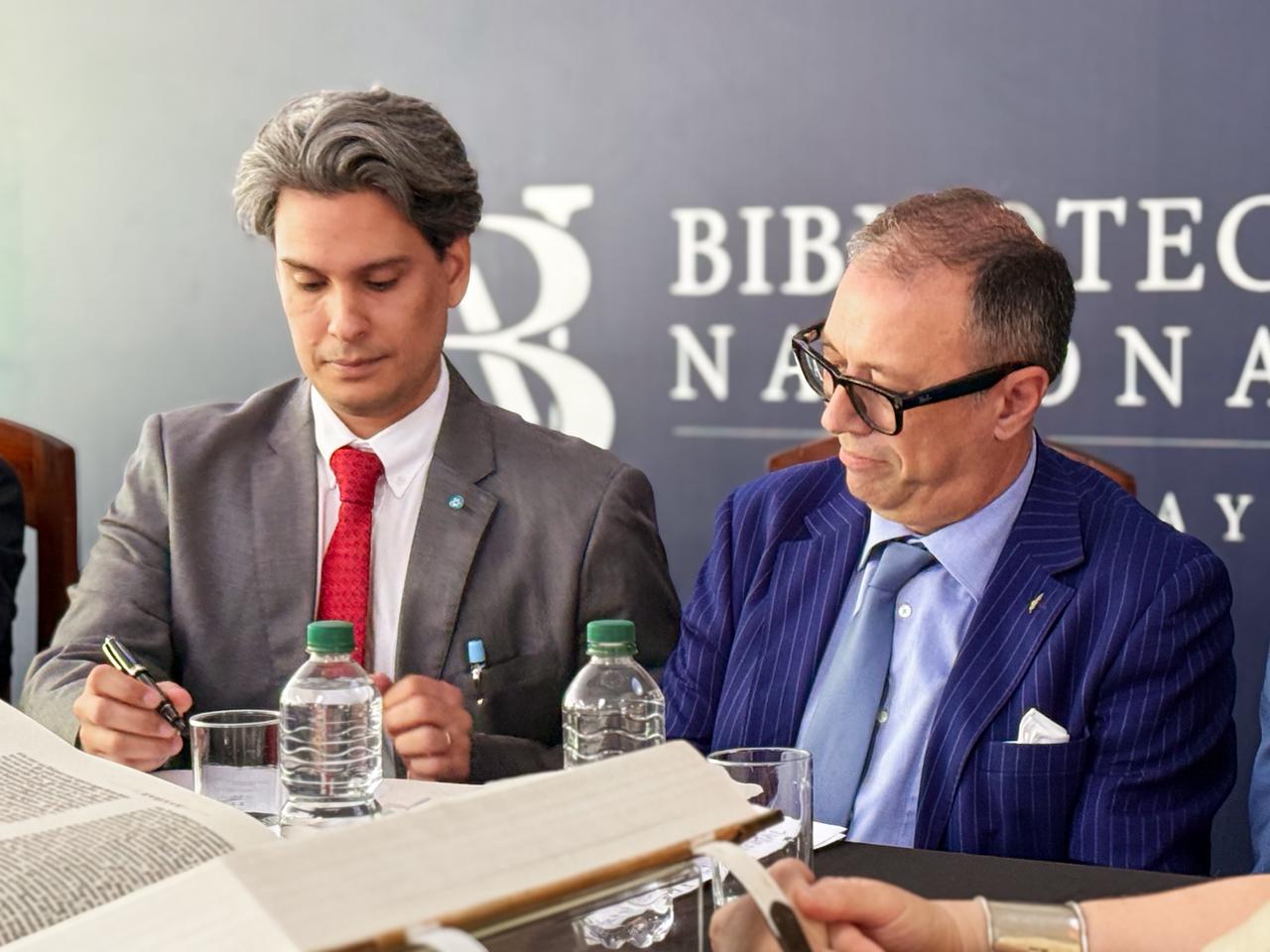 El documento de recepción fue firmado esta mañana por el director de la Biblioteca Nacional, Marco Augusto Ferreira; el presidente de la Fondazione Scriptorium Foroiuliense, Dr. Roberto Giurano; la directora general de Patrimonio Cultural, Natalia Ántola Guggiari; y el representante de la Embajada de Italia en Paraguay, Dario Miccoli. Estuvieron presentes, además, el intendente de San Daniele del Friuli (Italia), Pietro Valent; el intendente de Asunción, Luis Bello, y el maestro Stefano Pavetti, presidente honorífico de la Fondazione Scriptorium Foroiuliense, quien gestionó personalmente la donación tanto en Italia como en Paraguay.